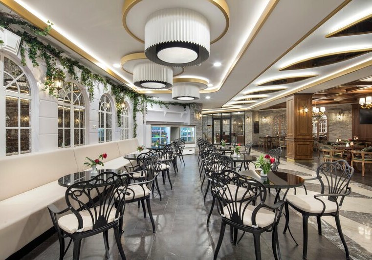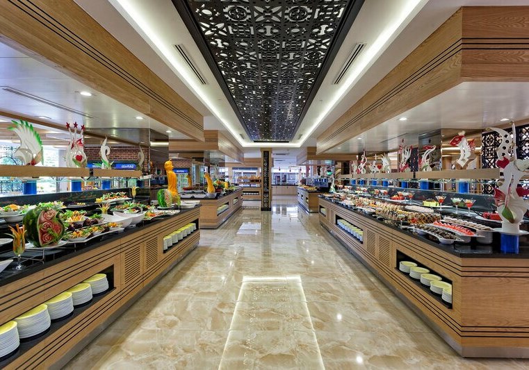 Ihr schlemmt in einem Buffetrestaurant mit Live-Kochen sowie mehreren À-la-carte-Optionen. All-Inclusive und All-Inclusive Plus bilden den Rahmen, inklusive alkoholfreier und alkoholischer Getränke, internationalen Marken, Snacks, vegetarischen Optionen und Diätgerichten bis hin zu glutenfreien Speisen und Babynahrung.
