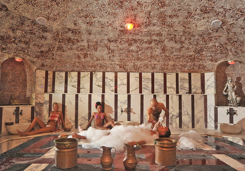 - Innen & Hammam: Hallenbad, Sauna und Türkisches Bad ergänzen die Erholung.