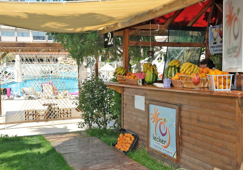 Die Lage an der Kumköy-Straße wirkt angenehm praktisch: Rund 300 Meter trennen Euch vom Sandstrand mit eigenem Abschnitt. Direkt vor dem Hotel warten Taxi- und Minibus-Verbindungen, eine Bushaltestelle liegt etwa 20 Meter entfernt. Einkaufsmöglichkeiten und eine Apotheke erreicht Ihr nach ungefähr 400 Metern.