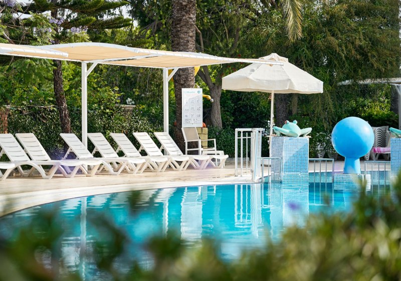 - Rutschenpool: Zwei Wasserrutschen bringen Dynamik in den Pooltag.