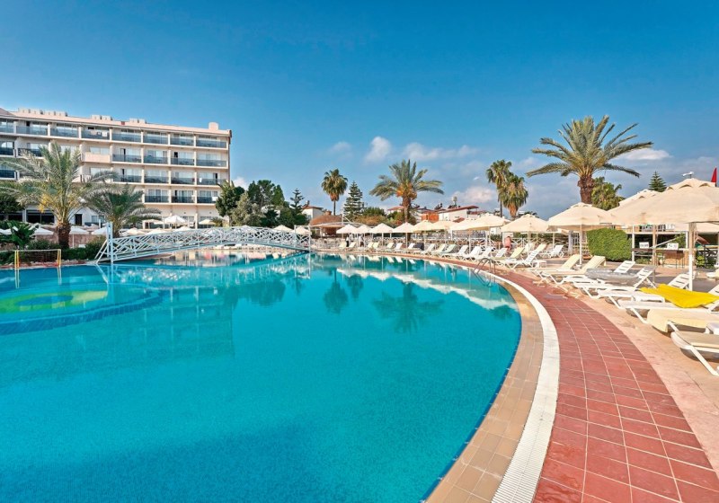 Die Anlage umfasst 404 Nichtraucherzimmer, ein fünfstöckiges Haupthaus mit Aufzügen sowie zwei dreistöckige Nebengebäude. Die Wege führen durch Gartenflächen zu Sonnenterrassen, Pools und dem hoteleigenen Strandabschnitt. WLAN nutzt Ihr in allen Bereichen, Handtücher, Liegen und Sonnenschirme stehen an Pool und Strand bereit.