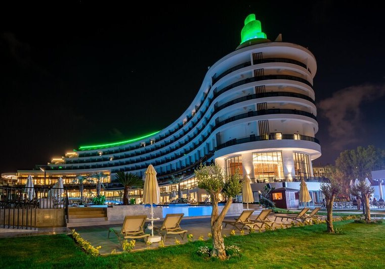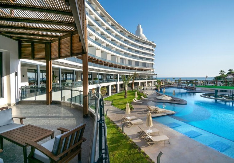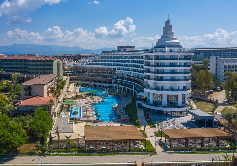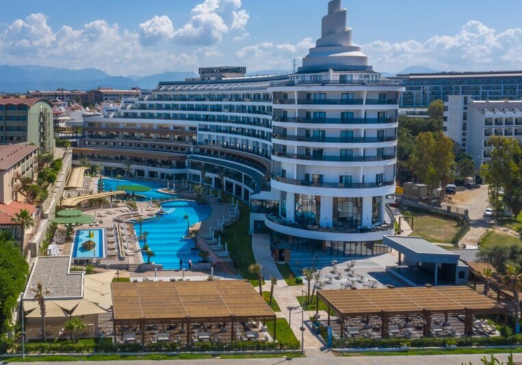 Im Seaden Quality Resort & SPA wohnt Ihr direkt am Sand-Kiesstrand von Side, in einem Resort mit 356 Zimmern und neun Etagen. Die großzügige Gartenanlage mit Süßwasserpool, Hallenbad und sonnigen Ruheflächen wirkt klar strukturiert und modern. Familien und Strandliebhaber finden hier ein unkompliziertes, gut organisiertes Umfeld mit vielen Rückzugs- und Aktivzonen.