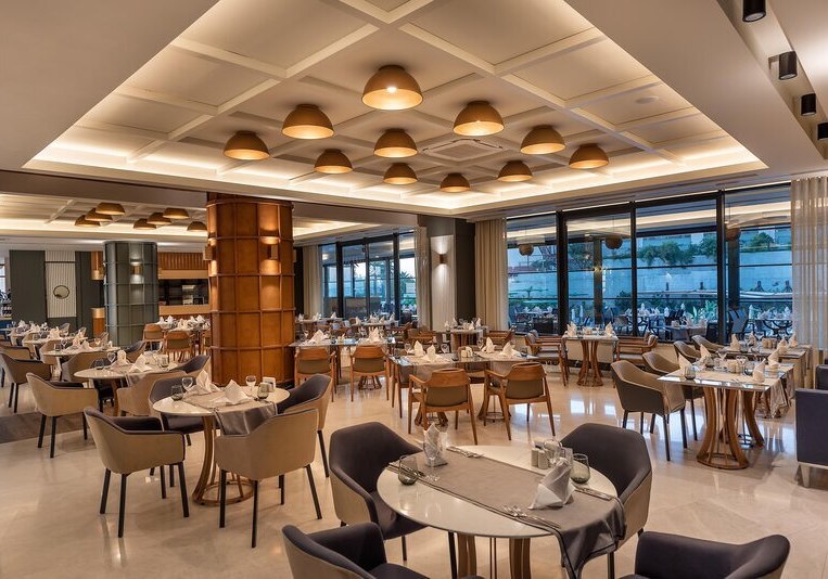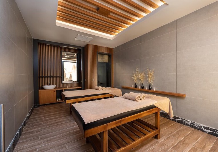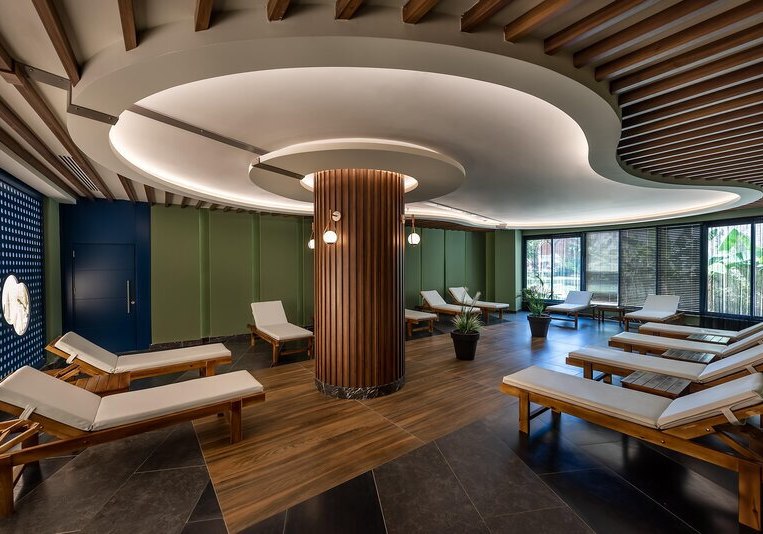 - Spa: Hamam, Behandlungsräume und klare Ruhebereiche strukturieren die Erholung.