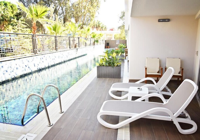 Ihr residiert direkt am Sand-Kiesstrand von Side. Zur historischen Altstadt sind es rund 3 km; Manavgat liegt etwa 7 km entfernt. Eine Bushaltestelle erreicht Ihr nach rund 150 m. Minibus-Verbindungen verlaufen an der Hauptstraße, sodass Ihr die Umgebung unkompliziert erkundet und spontane Abstecher gut einplant.