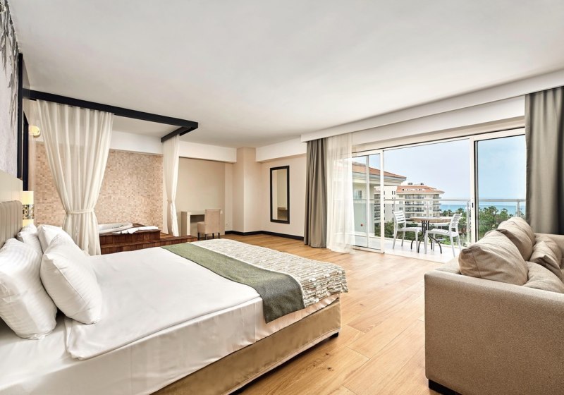 • Klimaanlage • Haartrockner • Minibar (kostenfrei) • Safe (kostenfrei) • Meerblick (je nach Zimmerkategorie) • Kaffee-/Teezubereiter • Fernseher • rollstuhlgerechte Zimmer (auf Anfrage) • WiFi (kostenfrei) • Stadtblick • Gartenblick • Landblick (je nach gebuchter Leistung, seitlich) • Wasserkocher • Wohneinheit in den oberen Etagen • Babybett (2, kostenfrei, Mindestalter, auf Anfrage) • Schlafzimmer (Anzahl) • Balkon (je nach Zimmerkategorie)