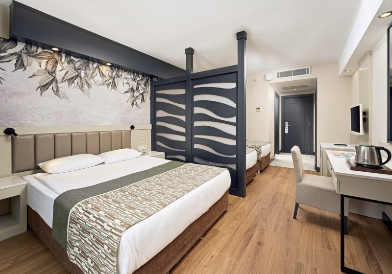 Ihr wohnt in einer Anlage mit 674 Zimmern und sieben Etagen im Hauptgebäude. WLAN ist inklusive, an Pool und Strand nutzt Ihr Liegen, Sonnenschirme und Badetücher ohne Aufpreis. Kulinarisch erwarten Euch ein Hauptrestaurant mit Terrasse, mehrere À-la-carte-Optionen sowie Patisserie, Lobbybar und Poolsnacks. Verschiedene Bars versorgen Euch vom Morgen bis zum Abend. Highlight: Strand & Pools. Direkter Blue-Flag-Strand, großer Süßwasserpool und separater Relaxbereich.