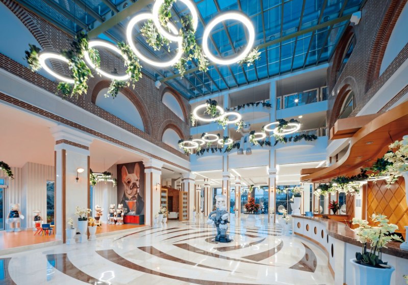 Die Atmosphäre wirkt spielerisch und zugleich strukturiert: Animation am Tag, Themenabende und Livemusik am Abend, dazu ein türkisches Café, Patisserie und Snack-Spots für kurze Genussmomente. Mit Konferenz- und Banketträumen eignet sich das Haus ebenso für Anlässe. WLAN nutzt Ihr in der gesamten Anlage kostenfrei, die Rezeption ist rund um die Uhr besetzt. Highlight: Direkter Sand-Kiesstrand mit eigenem Pier und ausgedehnten Poolzonen.