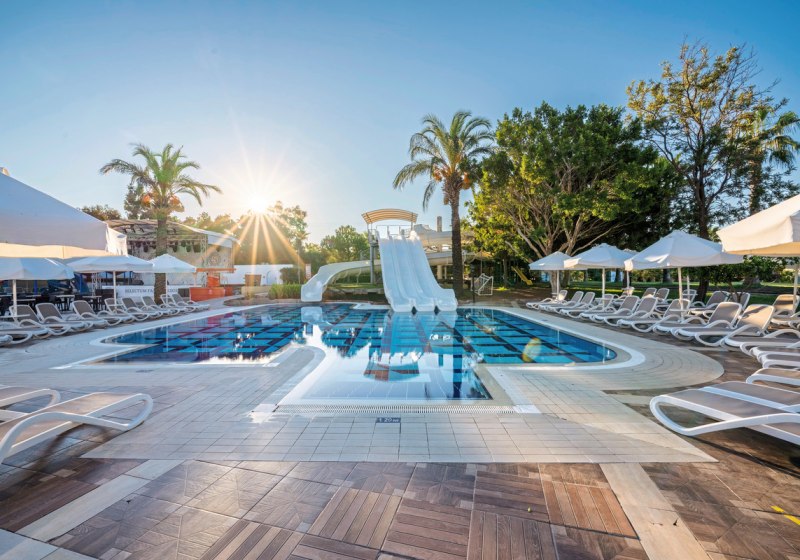 Im Selectum Family Resort Side taucht Ihr in ein weitläufiges Resort ein, das direkten Strandzugang mit lebendiger Ferienkultur verbindet. Über die Gartenwege erreicht Ihr Süßwasserpools, den eigenen Pier und einen Aquapark mit Rutschen. Familien finden viel Raum dank durchdachten Bereichen für Kinder und Erwachsene, während Paare Rückzugspunkte zwischen Sonnenterrassen, Bars und stillen Ecken im Grün entdecken.
