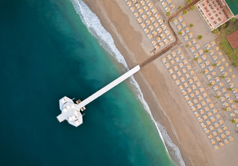 Das Resort liegt in Manavgat/Kizilagac direkt am Sand-Kiesstrand, mit Strandbar, Pier und kurzen Wegen von den Pools zum Meer. Bis Manavgat sind es etwa 13 Kilometer, bis Side etwa 15 Kilometer. Vor dem Hotel warten Minibusse und Taxis, sodass Ihr Ausflüge bequem plant, ob für Flussschluchten, antike Stätten oder einen Bummel am Hafen von Side. Die Lage wirkt ausgewogen: ruhig am Wasser, dennoch gut angebunden. In der Anlage selbst führen Gartenwege über Sonnenterrassen hin zu Bars und Freizeitbereichen. So kombiniert Ihr Strandtage mit spontanen Touren, ohne lange Transferzeiten in Kauf zu nehmen. Highlight: Direkte Strandlage mit kurzen Wegen und klarer Anbindung per Minibus und Taxi.