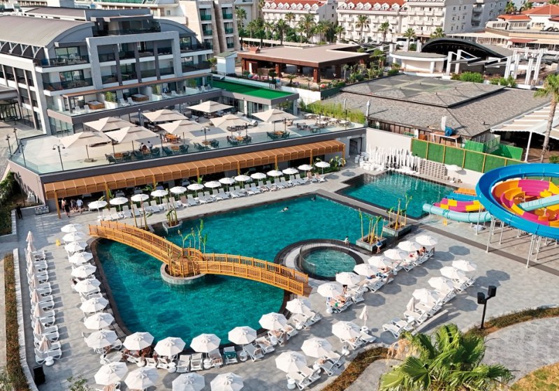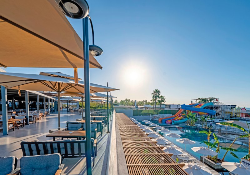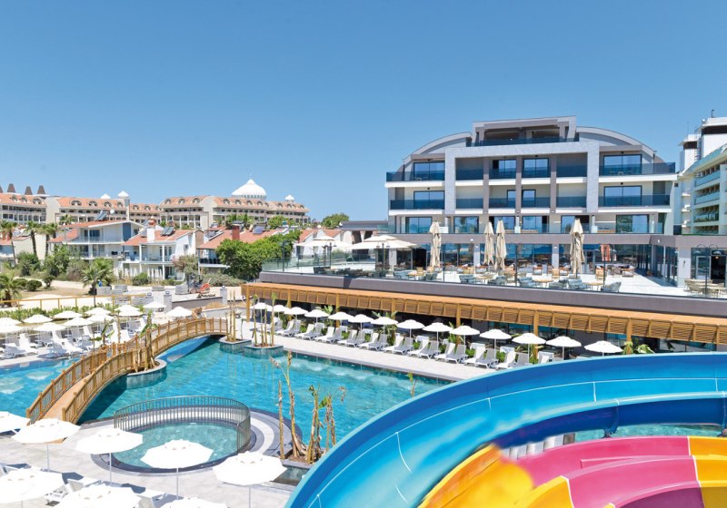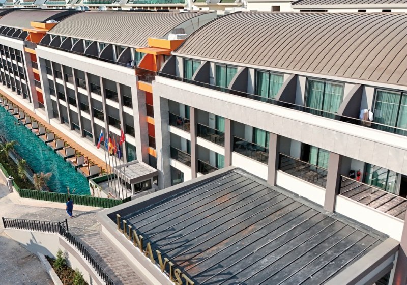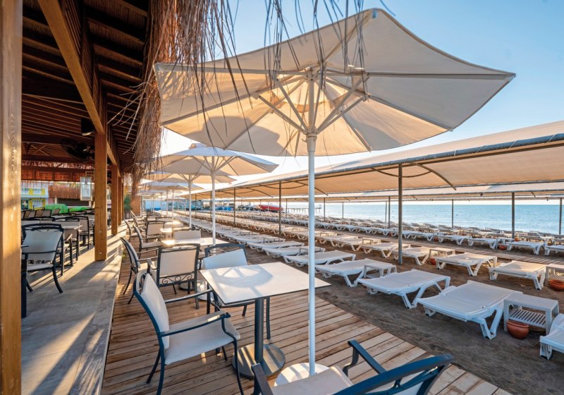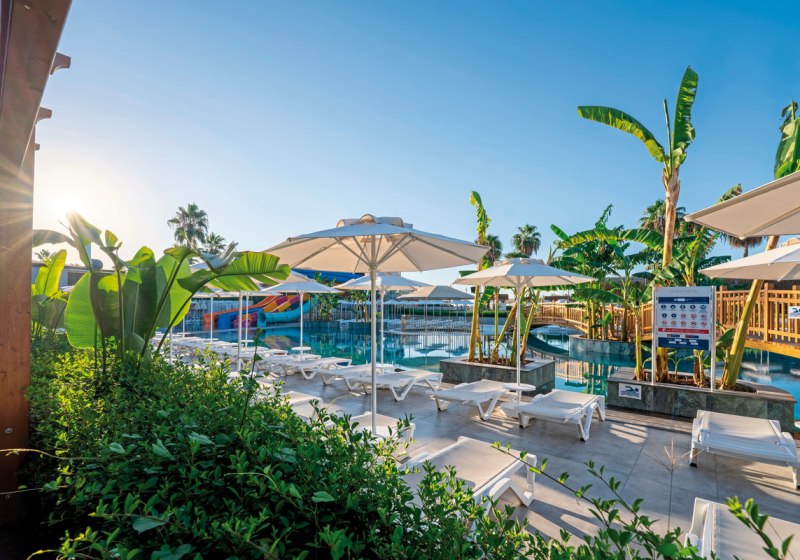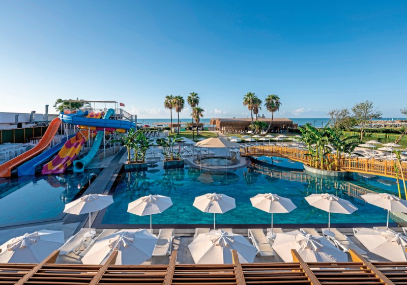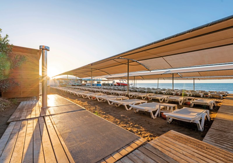 Die Anlage umfasst 280 Wohneinheiten auf fünf Etagen und richtet sich an Strandurlauber sowie Familien. Mehrsprachige Teams unterstützen Euch auf Deutsch, Englisch, Russisch und Türkisch. Zwischen ruhigen Zonen, Kinderbereichen und sportlichen Flächen findet Ihr ein strukturiertes Umfeld ohne Hektik. Highlight: Neueröffnung 2025 mit 5-Sterne-Standard und direkter Strandlage.