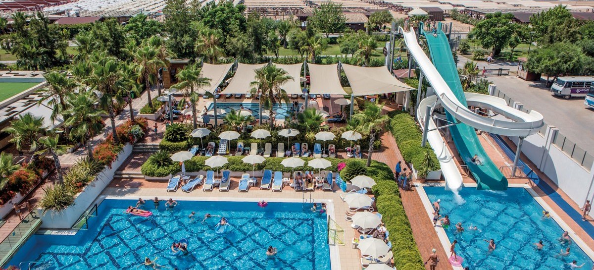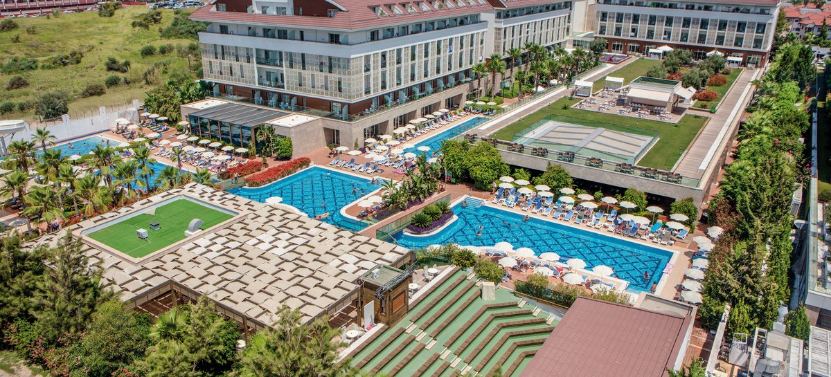 Die 2012 erbaute Anlage bietet 359 Wohneinheiten, eine großzügige Süßwasser-Poollandschaft mit Rutschen sowie ein beheizbares Hallenbad. WLAN steht Euch in der gesamten Anlage zur Verfügung, die 24-Stunden-Rezeption hält den Servicefluss auf Kurs. Kulinarisch führt der Weg vom internationalen Buffet über fünf À-la-carte-Restaurants bis zur Patisserie. Für Kinder gibt es Miniclub, Kinderpool und Spielbereiche, während Aktive zwischen Fitness, Tennis und Wassersport wählen.