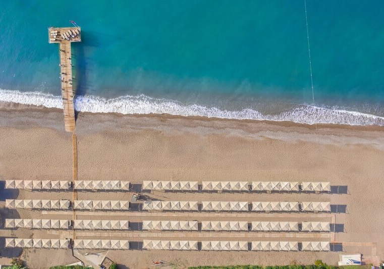 Ihr wohnt in Bogazkent direkt am eigenen Kies-Sandstrand, mit kurzen Wegen zwischen Pool, Sonnenterrasse und Meer. Bis ins Zentrum von Bogazkent sind es etwa 500 Meter, eine Bushaltestelle liegt rund 100 Meter entfernt. So erreicht Ihr die Umgebung unkompliziert und bleibt zugleich nah am Wasser. Belek liegt circa acht Kilometer entfernt, ideal für einen Abstecher. Die Lage verbindet Strandnähe mit alltagstauglicher Anbindung und schafft einen klaren Rahmen für Baden, Spaziergänge und Ausflüge.