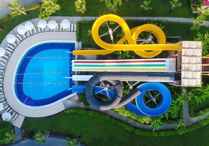 - Wasserspaß: Wasserrutschen plus weitere Wassersportarten setzen klare Akzente.
