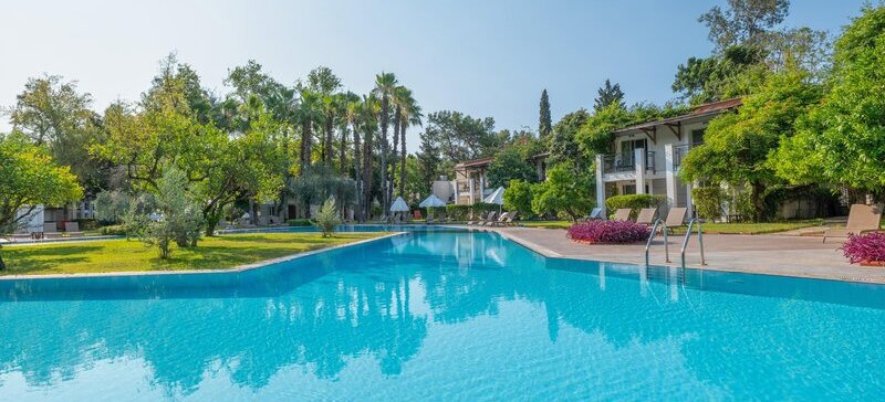 Sherwood Exclusive Kemer verbindet einen direkten Strandzugang mit einer weitläufigen Anlage, in der Ihr zwischen Pools, Gärten und ruhigen Sonnenterrassen den Tag strukturiert oder spontan gestalten könnt. Der Stil wirkt gepflegt und großzügig, ohne abgehoben zu sein. Familien, Paare und aktive Strandurlauber finden hier klare Angebote, die den Ablauf in den Ferien angenehm machen: kurze Wege, viele Plätze zum Verweilen, und ein Programm, das Abwechslung schafft, ohne zu überfordern.