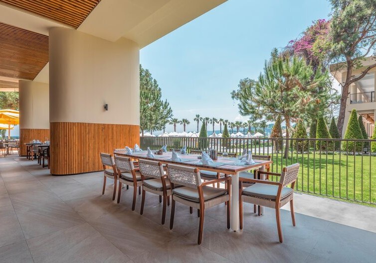 Mehrere Bars – von Poolbar bis Beach-/Snackbar – halten alkoholfreie und alkoholische Getränke bereit; eine Patisserie liefert den passenden süßen Abschluss. Babynahrung ist verfügbar und erleichtert Familien die Planung. Die Rückmeldungen zur Küche sind „Hervorragend“ und spiegeln frische Zubereitung, Organisation und Auswahl stilvoll wider. Highlight: Terrasse mit Weitblick, ideal für Frühstück und spätes Dinner.