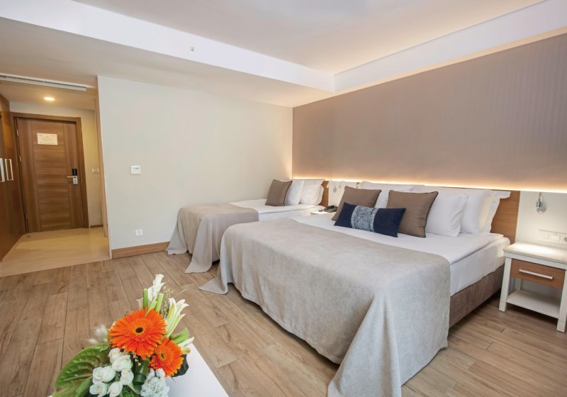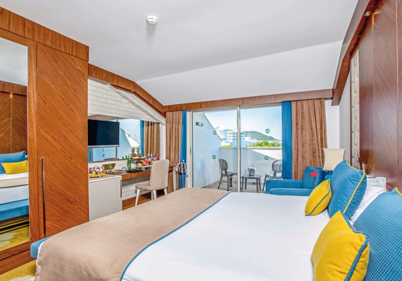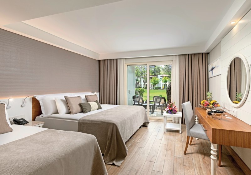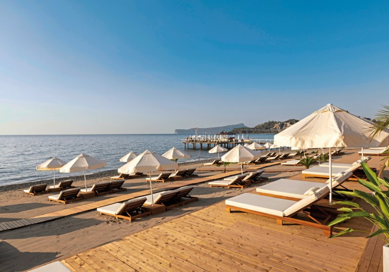 - Direkte Strandlage: Kleinkiesstrand vor der Tür, Kemer-Zentrum etwa neun Kilometer entfernt.