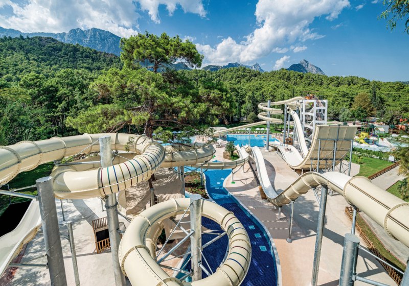 - Aquapark: Sechs Rutschen setzen dynamische Akzente für Groß und Klein.