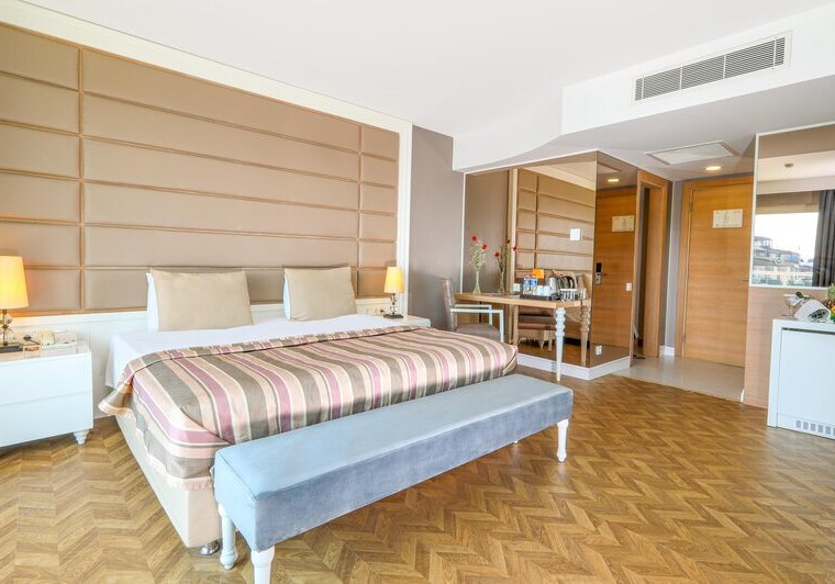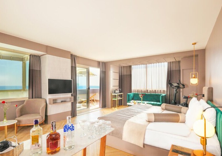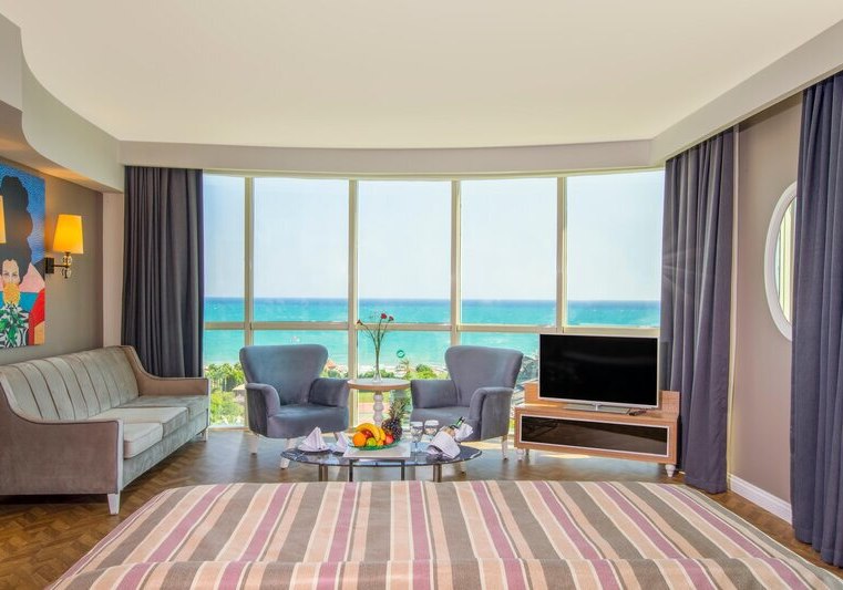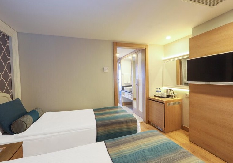 Die Adresse in Lara verbindet Strandnähe mit schneller Anbindung: Antalya liegt rund 12 Kilometer entfernt, der Flughafen etwa 10 Kilometer. Öffentliche Minibusse und Taxis stehen direkt vor dem Hotel, eine Bushaltestelle findet Ihr in rund 100 Metern. So erreicht Ihr City, Basare und Hafen ohne Umwege.
