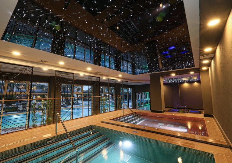 - Ruhige Rückzugsorte: Hallenbad, Hamam, Sauna und Anwendungen ergänzen den Badefokus.
