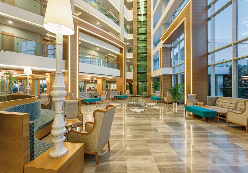 In den neun Etagen von Haupt- und Nebengebäude erwarten Euch 499 Zimmer, helle Lobbys mit Lobbybar sowie kurze Wege zu Restaurants und Bars. WLAN ist inklusive, ebenso Liegen, Schirme und Badetücher am Pool und Strand. Zertifizierte Nachhaltigkeit schafft zusätzliche Verlässlichkeit. Das Profil passt ebenso zu Familien wie zu Tagungs- und Hochzeitsreisenden.
