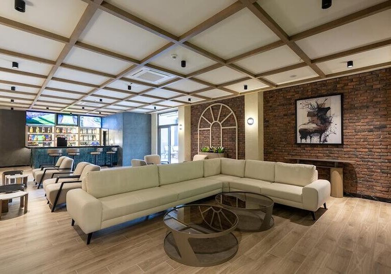 Das Resort umfasst 263 Zimmer, verteilt auf Haupt- und Nebengebäude mit je vier Etagen. Rezeption und Lobby sind zentraler Treffpunkt, Aufzüge erleichtern Wege. WLAN nutzt Ihr kostenfrei im gesamten Hotel und sogar am Strand. Minimarkt, Shop und Friseur ergänzen das Angebot.