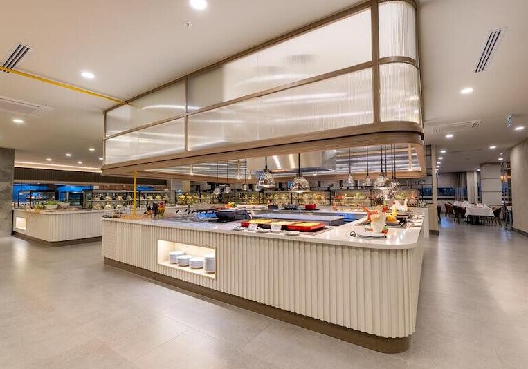 Im Hauptrestaurant erwartet Euch ein Buffet mit breiter Auswahl. Zwei À-la-carte-Restaurants setzen zusätzliche Akzente für Abende mit fester Menüfolge. Zwischendurch versorgt Ihr Euch entspannt an Snackbar und Beach-/Snackbar, während die Patisserie süße Pausen stilvoll füllt.
