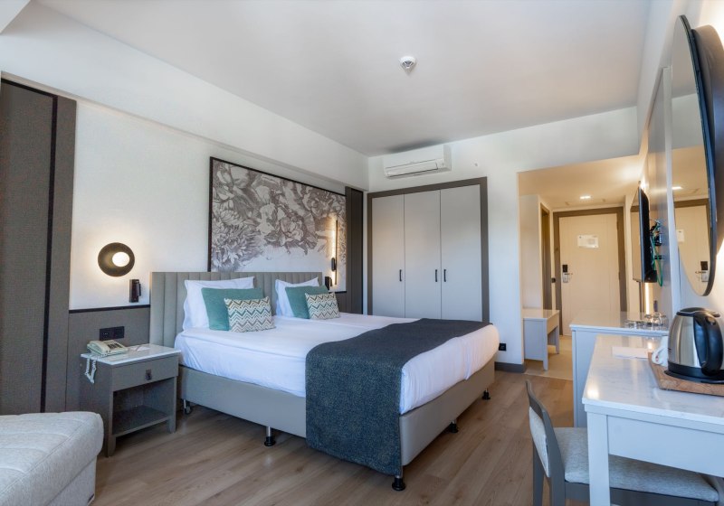 Für Familien, Paare und Strandfans bieten Miniclub, Relaxpool und ein saisonal beheiztes Hallenbad verlässliche Abwechslung. Die Lage nahe Side und der rund 600 Meter entfernte, flach abfallende Strand runden das stimmige Gesamtpaket ab.