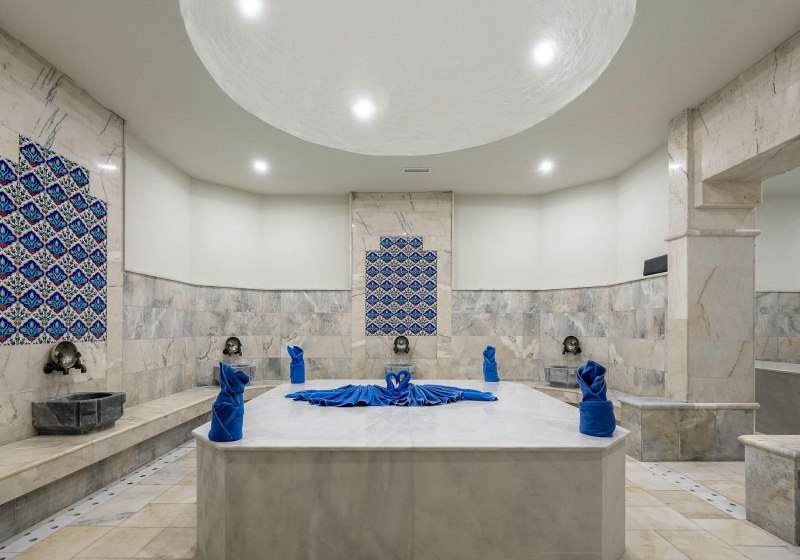 - Ruhiger Bereich: Relaxpool ab 16 Jahren ergänzt Hallenbad, Sauna und Hamam.