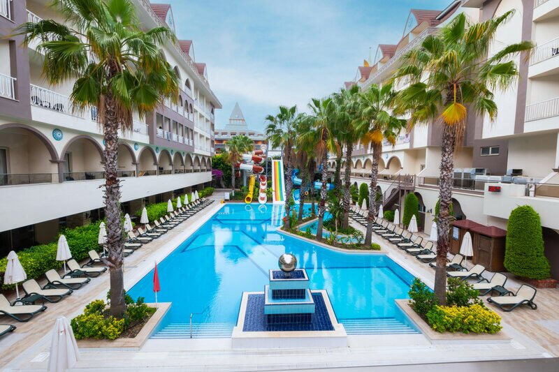Ihr wohnt in Evrenseki bei Side, mit dem Zentrum von Side in rund 6 Kilometern Entfernung. Der hoteleigene Sandstrand liegt etwa 400 Meter entfernt – nah genug für den Spaziergang mit Strandtasche. Bars, Restaurants und Einkaufsmöglichkeiten erreicht Ihr in etwa 200 Metern, öffentliche Verkehrsmittel sind verfügbar und machen Ausflüge unkompliziert.