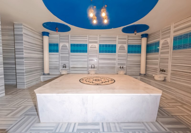 Der Spa‑Bereich fokussiert auf klassische Wärme‑ und Wasser‑Erholung: Hamam, Sauna und Dampfbad bilden das Fundament, ergänzt durch ein Hallenbad. Ein Whirlpool steht ebenfalls bereit. Das Angebot ist klar strukturiert, leicht zugänglich und auf geradlinige Regeneration ausgelegt.