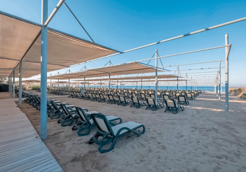 - Eigener Strand: Liegen, Schirme und Tücher am Strand inklusive.