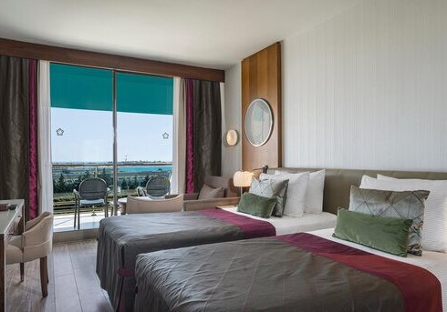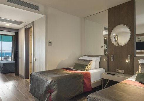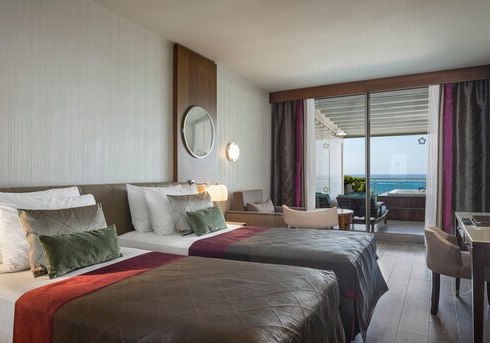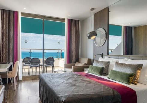 Eure Zimmer sind mit Dusche, WC, Föhn, Kosmetikspiegel und Slippern ausgestattet, dazu individuell regulierbare Klimaanlage, Kaffee- und Teezubereiter, WLAN, Telefon, Sat-TV, Minibar und Safe. Laminatboden und Balkon gehören ebenso dazu; Meerblick ist buchbar. Für ruhige Stunden wählt Ihr Varianten mit Terrasse oder Whirlpool in ausgewählten Deluxezimmern.