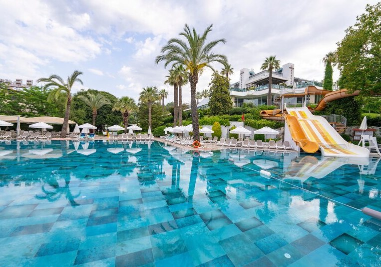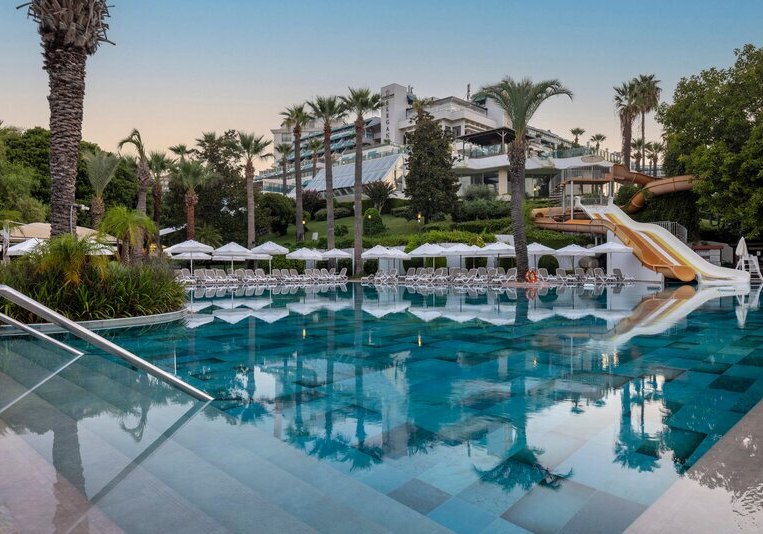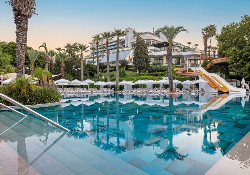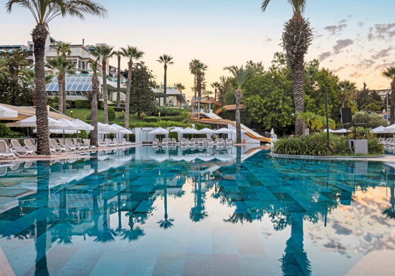 - Weite Wasserflächen: Mehrere Süßwasserpools mit separatem Kinderbecken und Rutschen.