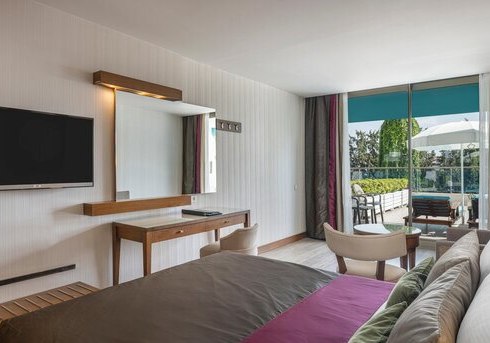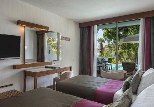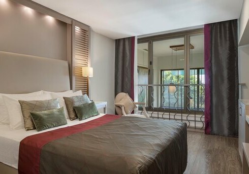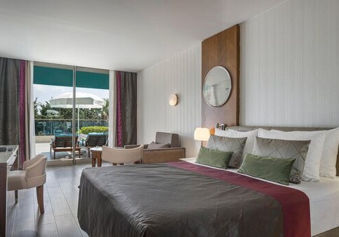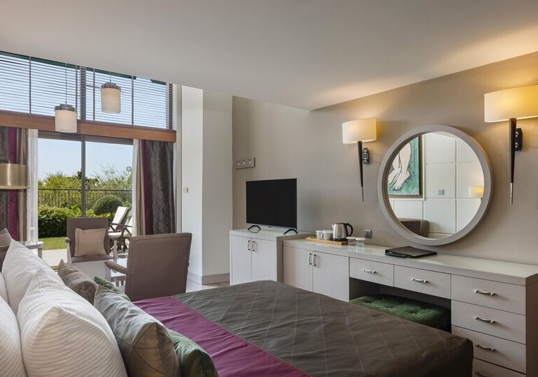 • Klimaanlage • Haartrockner • Minibar • Safe • Meerblick (je nach Zimmerkategorie) • Kaffee-/Teezubereiter • Fernseher (Sat-TV) • WiFi • Poolblick • Wasserkocher (kostenfrei) • Pool (geteilt) • Wohneinheit im Erdgeschoss • Babybett (nach Verfügbarkeit, auf Anfrage) • Bettwäsche (Spannbettlaken, Faserkissen, Matratzenschutz, kostenfrei, Decke) • Schlafzimmer (Anzahl) • Wahrzeichenblick • Kleider-/Wandschrank • Housekeeping (täglich) • Balkon (je nach Zimmerkategorie) • Terrasse
