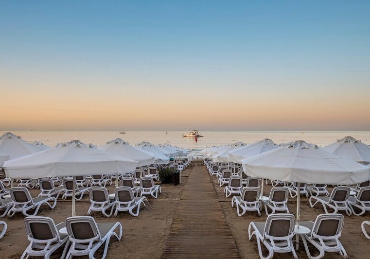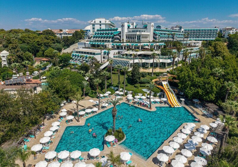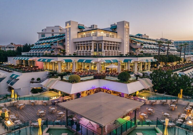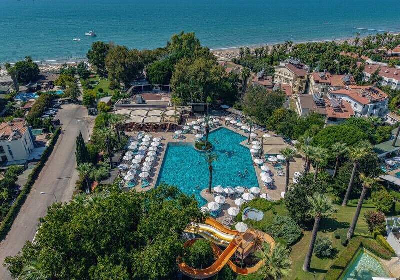 Im Side Star Elegance erwartet Euch eine weitläufige Strandadresse mit klarem Fokus auf erholsame Tage am Meer und aktiven Genuss. Ihr wohnt oberhalb der Hotelzone von Side, mit direktem Zugang zum langen, flach abfallenden Sandstrand samt Promenade. Die Anlage wirkt vielschichtig: ruhige Ecken am Relax-Pool ab 18 Jahren, lebendige Bereiche rund um die großen Süßwasserpools und die Rutschen. Familien finden strukturierte Angebote, Paare genießen Rückzugsorte und die abwechslungsreiche Gastronomie. Highlight: Direkter Strandzugang mit Promenade für entspannte Wege zwischen Pool und Meer.