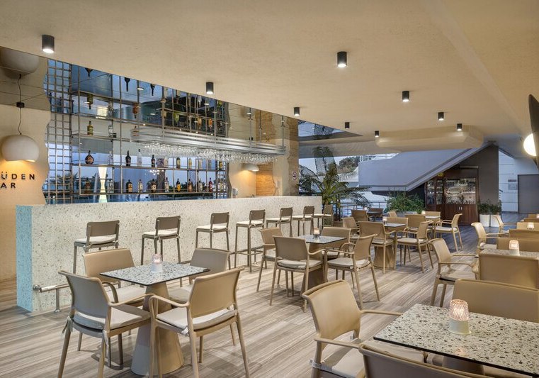 Bars verteilen sich über die Anlage – inklusive Poolbar für kurze Wege zwischen Liege und Erfrischung. Das Verpflegungskonzept ist auf All-Inclusive ausgerichtet, inklusive alkoholfreier und alkoholischer Getränke sowie Snacks. So plant Ihr den Tag flexibel, ohne feste Uhrzeiten im Blick zu halten. Highlight: Terrasse des Hauptrestaurants verbindet offene Luft und großzügige Buffets.