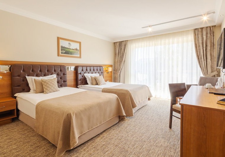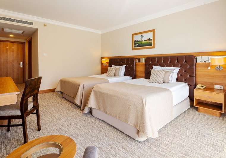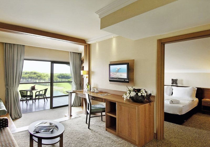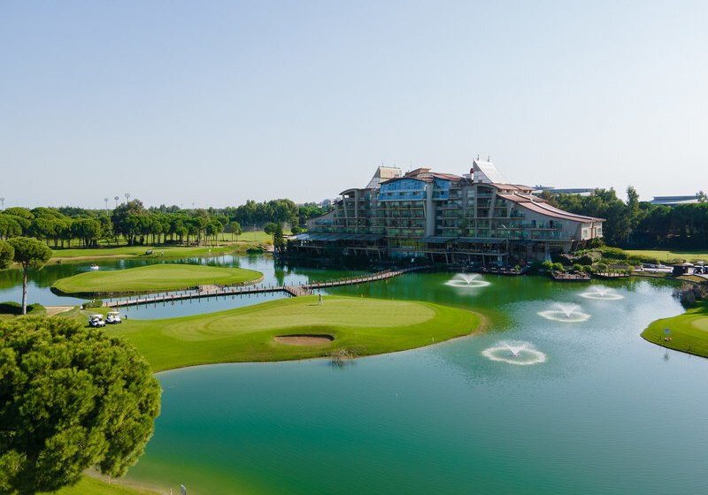 Ihr wohnt in Belek/Kadriye, direkt an zwei hoteleigenen Golfplätzen. Der Sandstrand liegt etwa 400 Meter entfernt, nach Kadriye sind es rund 3 Kilometer, nach Antalya etwa 30 Kilometer. Ein Park befindet sich in 50 Metern, das Touristenzentrum erreicht Ihr nach 3 Kilometern. Eine Strandbar, Liegen und Sonnenschirme strukturieren Euren Tag zwischen Fairway und Meer.
