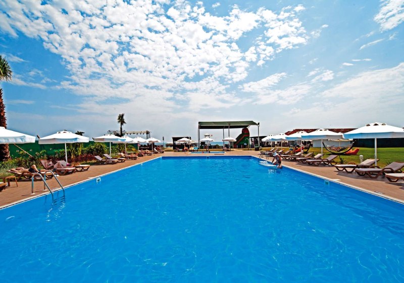 Familien profitiert Ihr vom Miniclub, Spielplatz, Kinderbecken und Wasserrutsche, während Ihr im Spa mit Hallenbad, Sauna, Dampfbad und Türkischem Bad ausspannt. Abends sorgen Animation, Livemusik, Theater- und Nachtclub‑Bühnen für Abwechslung. Flexible Verpflegung vom Buffet bis All‑Inclusive hält Euch entspannt im Tagesfluss. Highlight: Vielfältige Familienangebote mit Miniclub, Minidisco und Kinderbecken.