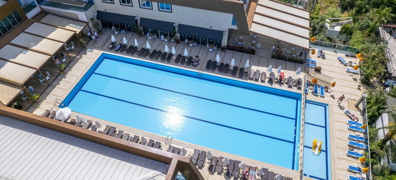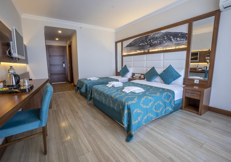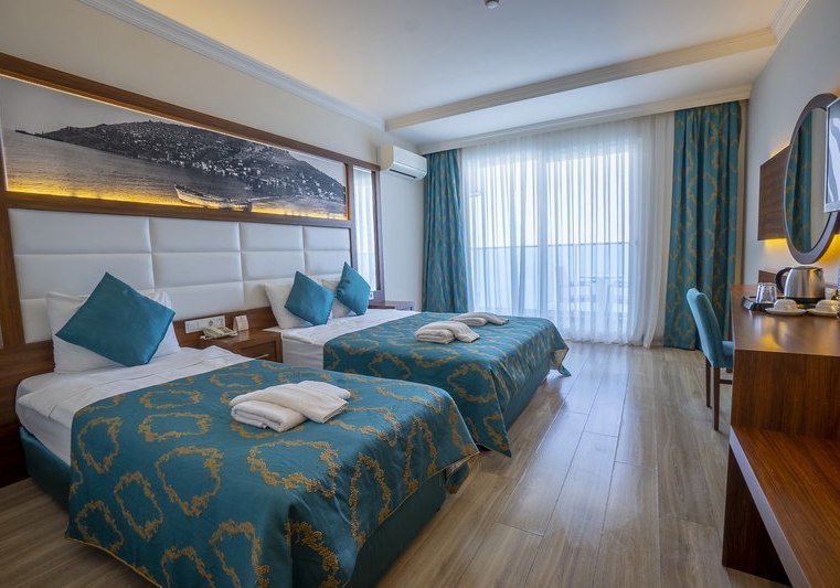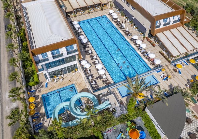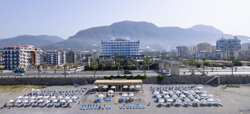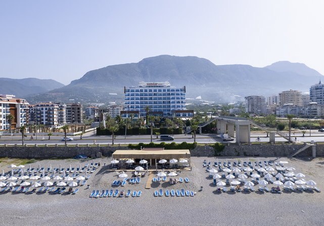 Sun Star Resort bringt Euch nach Alanya, direkt an den breiten Sandstrand. Ihr bewegt Euch zwischen Gartenbereichen, Sonnenterrassen und zwei Poolzonen mit Rutschen und Kinderbecken. Drinnen wartet zusätzlich ein Hallenbad. Das Haus wirkt lebhaft organisiert: Animation, Miniclub und Abendangebote geben dem Tag Struktur, ohne den Strandrhythmus zu übertönen.