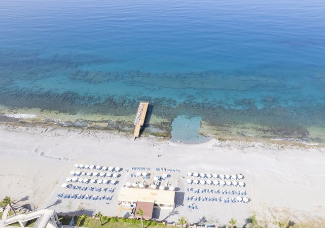 - Strandnähe: Sandstrand in unmittelbarer Nähe mit Strandbar, Liegen und Schirmen.