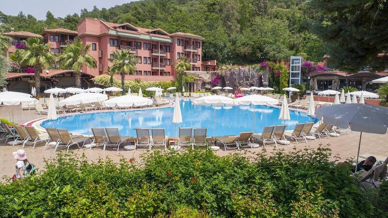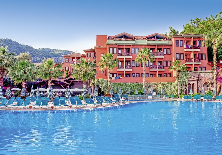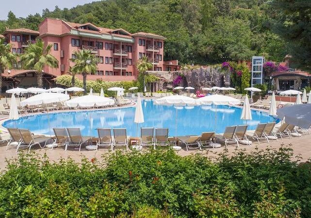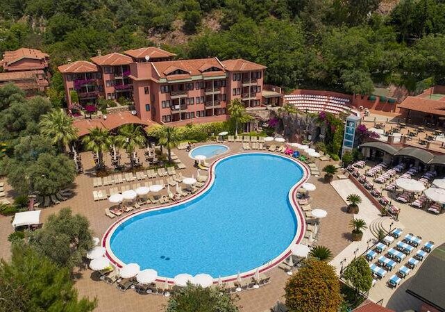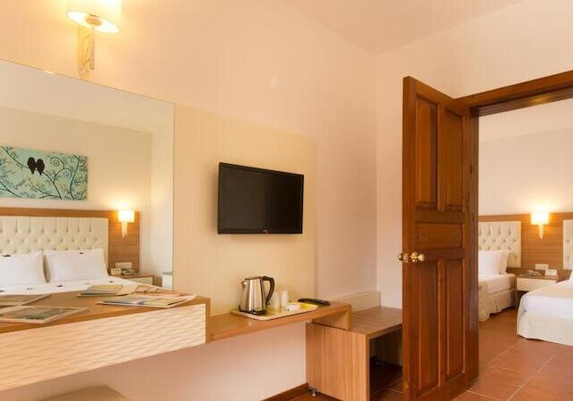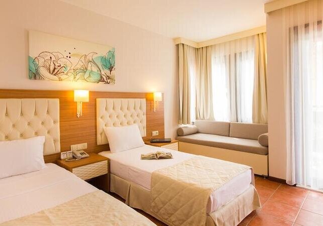 Im Sundia by Liberty Suncity erlebt Ihr Ölüdeniz in greifbarer Nähe: Nur wenige Schritte trennen Euch vom Strand, während Ihr in ruhigen Gärten und an weitläufigen Pools entspannt. Die Architektur verteilt sich auf mehrere dreistöckige Einheiten, die Wege bleiben kurz. Familien, Strandliebhaber und Aktive finden hier verlässliche Strukturen ohne Schnickschnack.