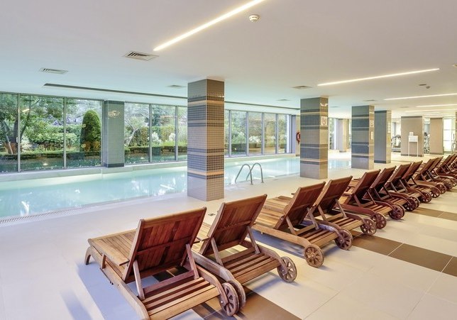 • Liegestühle • Hallenbad • Außenpool • Sonnenschirme • Poolbar • Sonnenterrasse • Badetücher • Wasserrutsche • Wasserpark • Pool