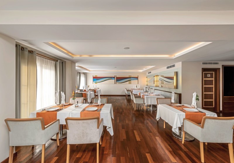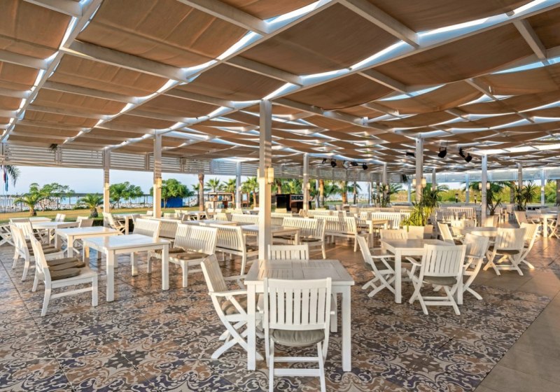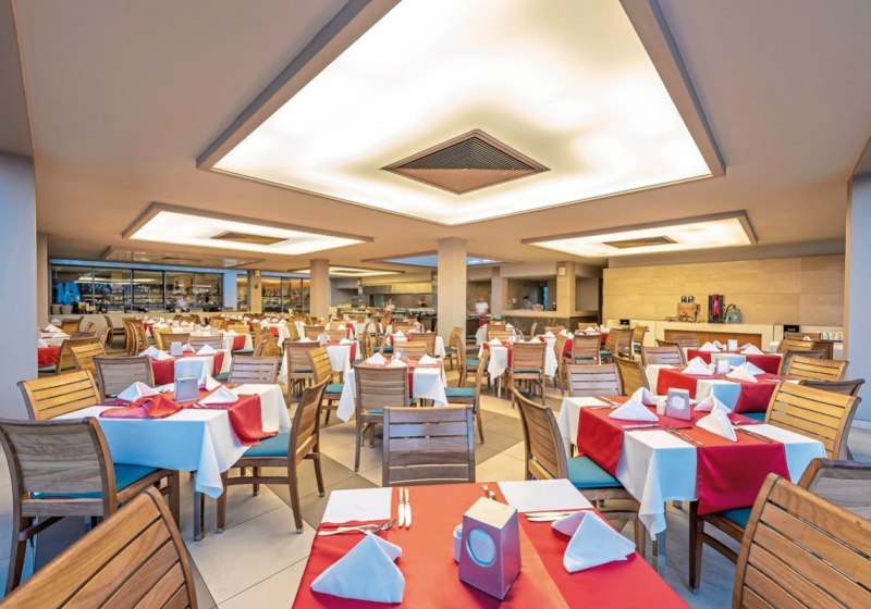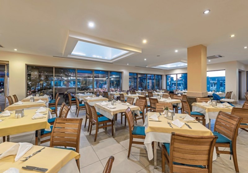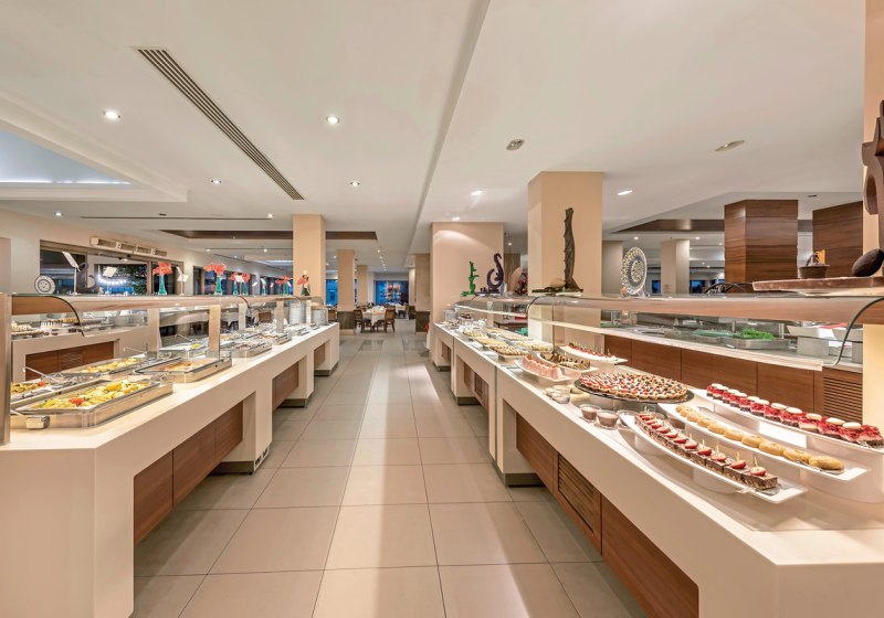 Ihr bewegt Euch durch helle Lobbybereiche, passiert kleine Geschäfte und kehrt zwischendurch in Bars, Café oder Patisserie ein. Abends verlagert sich das Leben an Bühne und Amphitheater, später in die hauseigene Diskothek. Kulinarisch wählt Ihr zwischen Buffet mit Terrasse und À‑la‑carte‑Adressen; tagsüber versorgen Euch Pool‑Snackbar und Beachbar. Die Kombination aus strandnaher Lage, vielfältiger Infrastruktur und durchdachter Familienfreundlichkeit verleiht Eurem Aufenthalt einen klaren Rhythmus – unkompliziert, abwechslungsreich, stimmig.
