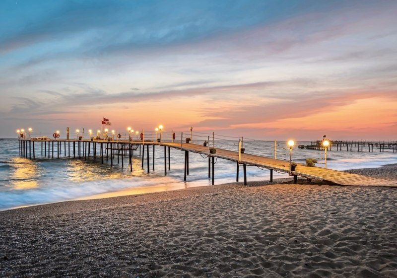 Ihr urlaubt in Manavgat/Kizilagac, direkt am Sand‑/Kiesstrand mit eigenem Abschnitt. Vor dem Hotel warten Minibusse und Taxis, wodurch Ihr flexibel zwischen Küste und Ausflugszielen pendelt. Bis Manavgat sind es etwa 15 Kilometer, nach Side rund 20 Kilometer – zwei lohnende Adressen für Altstadtspaziergänge, Hafenflair und Einkäufe. Der Flughafen Antalya liegt etwa 90 Kilometer entfernt.