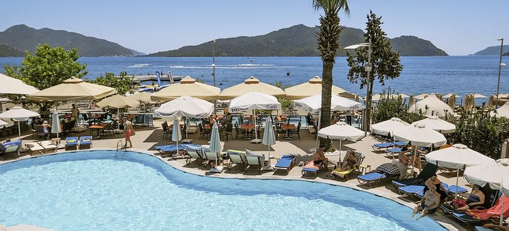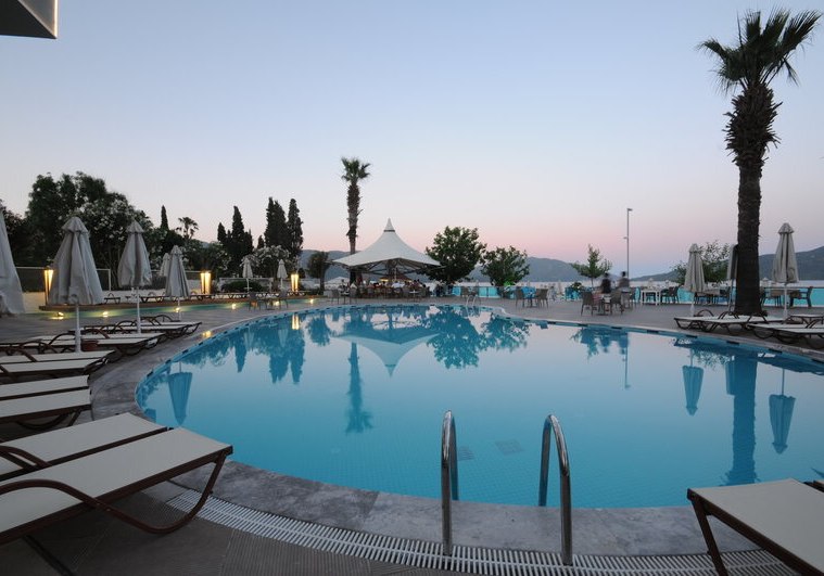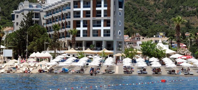 „Das Sunrise Resort &SPA empfiehlt sich für Strandtage mit kurzen Wegen, verlässlichen Services und gut bewerteter Küche; Ihr wohnt direkt am Wasser und erreicht Marmaris’ Zentrum nach nur rund zwei Kilometern bequem.“