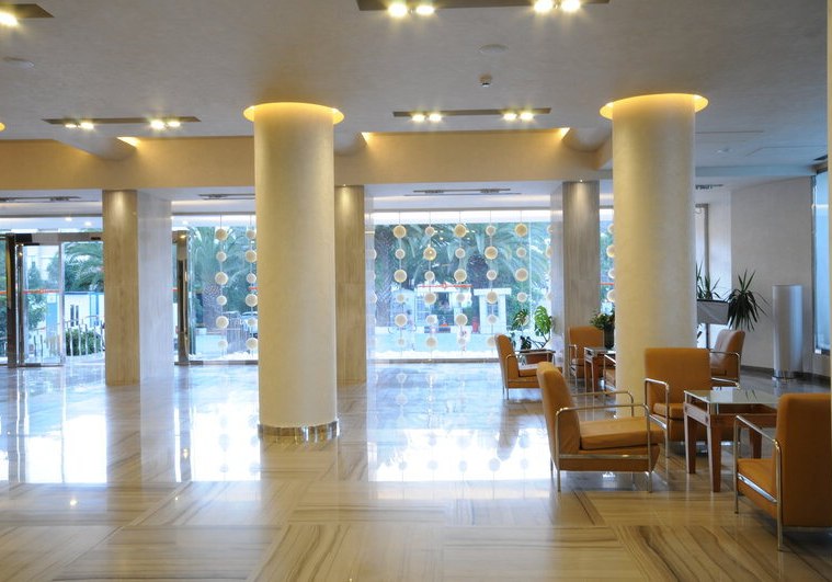 Die öffentlichen Bereiche sind klar gegliedert: Empfangshalle mit Rezeption, WLAN in den allgemeinen Zonen und kurze Wege hinaus zum Außenpool mit Sonnenterrasse. Am Pool wie am Strand stehen Euch Liegen und Schirme bereit; Badetücher erhaltet Ihr gegen Kaution.