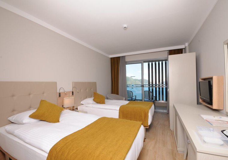 Direkt am Strand von Marmaris kombiniert das Sunrise Resort &SPA kurze Wege, verlässliche Gastronomie und klare Freizeitangebote. Die Küche ist hervorragend bewertet, die Zimmer zweckmäßig ausgestattet und mit buchbarem seitlichen Meerblick. So gestaltet Ihr eure Tage geradlinig und entspannt.