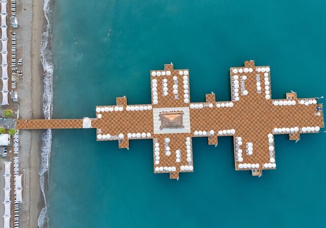Das Resort liegt direkt am Kies-Sandstrand von Lara. Bis Kundu sind es etwa drei Kilometer, das Zentrum von Antalya erreicht Ihr nach rund 20 Kilometern. Taxi- und Minibusverbindungen starten unmittelbar vor dem Hotel und erleichtern Euch flexible Ausflüge zwischen Strand, Shopping und Altstadt.