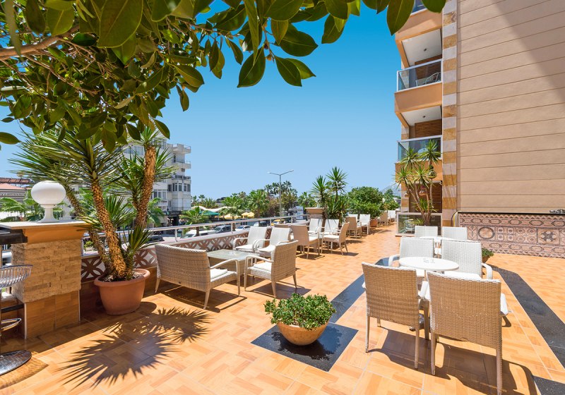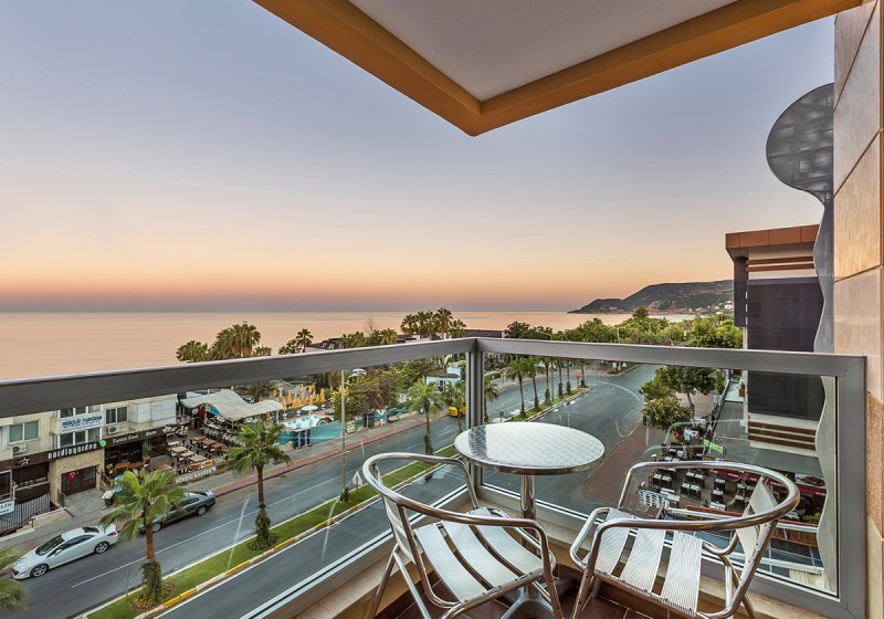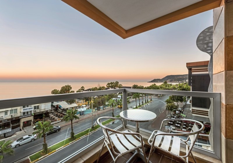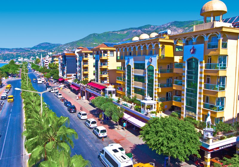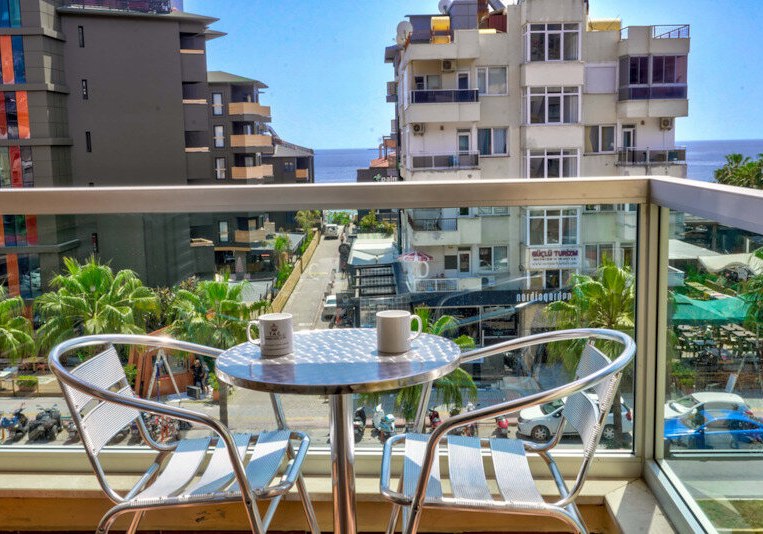 Ihr wohnt in Alanya nur etwa 50 Meter vom Kleopatra-Strand entfernt, getrennt durch die Küstenstraße. Das Zentrum erreicht Ihr nach ungefähr einem Kilometer; das Touristenzentrum liegt rund 300 Meter entfernt. Bars, Restaurants und Einkaufsmöglichkeiten befinden sich in etwa 100 Meter Distanz, ideal für kurze Wege am Abend.