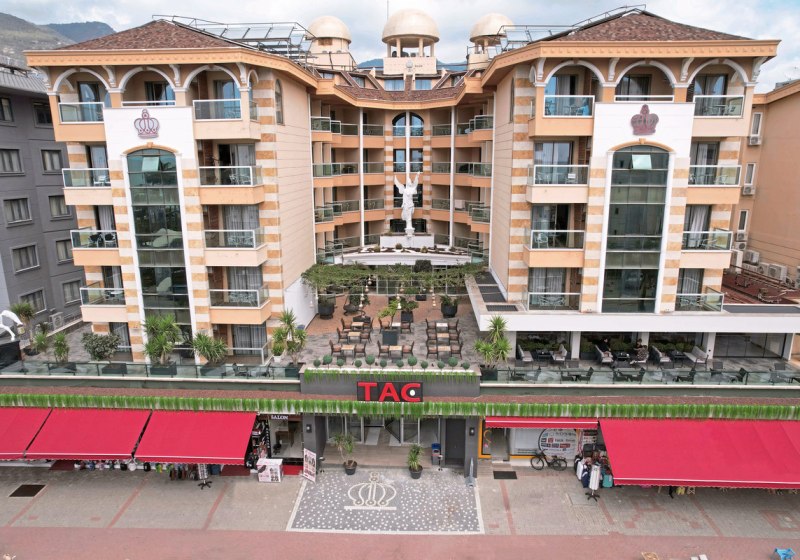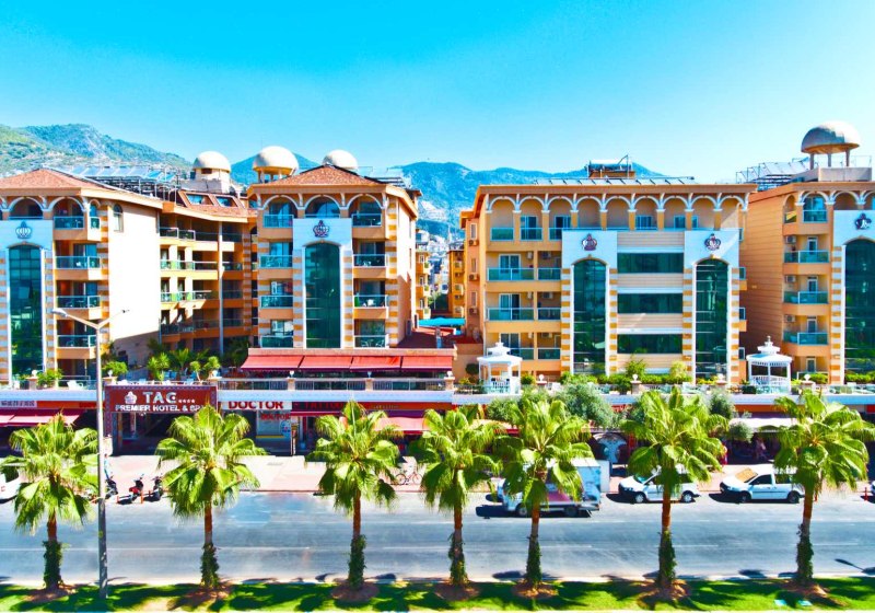 Willkommen im Taç Premier Hotel & Spa, wo Ihr in Alanya zwischen Stadtflair und Strandnähe ankommt. Die Anlage besteht aus mehreren Gebäuden, wirkt lebendig und zugleich übersichtlich organisiert. Ihr bewegt Euch durch klare Wege, findet schnelle Orientierung und taucht in einen unkomplizierten Rhythmus aus Strandmomenten, Poolzeit und kurzen Wegen zu Bars sowie Restaurant ein.